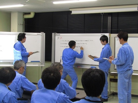 「KYT」発表大会では、工場での作業をイラストにしたものを見て、