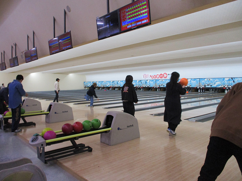 ストライクが出たレーンは大盛り上がりで、ハイタッチ✋✋????
