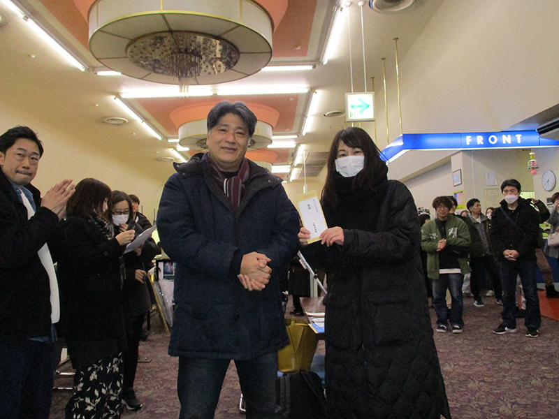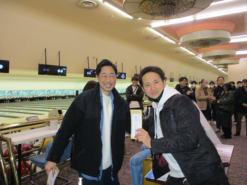 いよいよ表彰式です☆彡順位の名前が発表されるたびにドキドキ。去年のボーリング大会は優勝者が女性でしたが、何と今年も優勝者は女性でした。