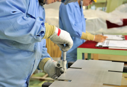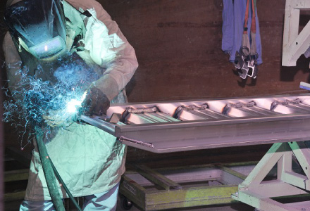アルミニウム溶接は一般的に溶接難易度が高い材質とされていますが、作業者は溶接技能検定を取得し、薄い板材から厚い形材まで幅広く製作しております。また軽金属溶接協会認定のR級を取得しており、品質及び安全性を確保し、お客様に満足して頂ける製品作りを行っています。