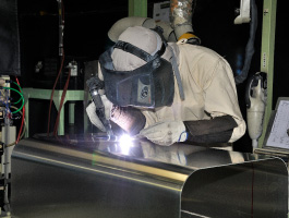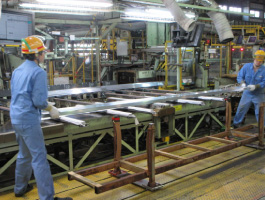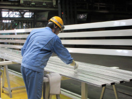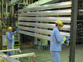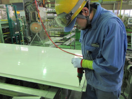 マシニングセンタという自動加工機や、ハンドドリル等の電動工具を用いて、形材の切断や穴あけ、また部品の取り付けを行います。